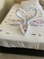 Сам отель конечно старенький и конечно номера и не только желают ренновации. НО! Мы жили в главном корпусе на 3-м этаже, номер "подгулявший", однако в принципе все работало, ничего не было поломанным. Пастельное белье отличное. Меняли по запросу ( мы просто оставляли специальную табличку о смене пастельного белья и без проблем меняли). Убирали так себе...пол протрут, кровати заправят, игрушки ребенка аккуратно разложат. Оставляли чаевые естественно, вот тогда еще и балкон уберут :)), кстати всегда оставляли полотенца на полу и всегда меняли на чистые. Вопросов вообще в этом плане не было. Единственное разочарование - это розетки. Их считайте не было. Мы просто достали с розетки шнур от торшера и там все 11 дней заряжали телефоны )))). А так номер сойдет. Хотя мы только в нем мылись после пляжа и спали. Больше он нам не для чего не нужен был. Да, номер был прямо напротив сцены анимации, музыка конечно же в номере слышна, слышно и после 23.00 с клуба Будда, но ребенок так выматывался, что засыпал при любой громкости. А нам вообще было по кайфу и музыка не мешала. Но если кому это принципиально, то конечно основной корпус не ваш вариант точно. Но если мы еще раз вернемся, то например наш выбор будет только на главном корпусе.
