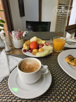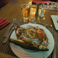 Еда в отеле, особенно в главном ресторане, радует разнообразием и обилием: всегда есть выбор - мясо, рыба, курица (мне очень нравилось мясо по-марокански и запечённая картошка, цыплята на гриле, а также куриный суп с овощами), много фруктов - цитрусовые, финики, яблоки, хурма, бананы, виноград, гранаты, в этом году добавились гуава и дыня, в изобилии огурцы, помидоры, перец, различная зелень - салаты, руккола, появился укроп, замечательный свежий хлеб, лепёшки, блинчики, а также омлет- и паста-стейшен. Вкуснейшие пироженки и десерты-желе, различные варенья, мёд даже в сотах. Кофе в кофемашине. Есть вегетарианская пища и стол ЗДОРОВОЕ ПИТАНИЕ. В этом году свежевыжатые соки манго, апельсиновый и каркадэ стали бесплатными! На ужин и обед вино в бокалах. Отдельной похвалы заслуживает подача блюд - изобретательности в украшении выставленных блюд нет предела: всё это радует и усиливает аппетит! Мороженое из автомата - не вкусное, но на десерт в итальянском ресторане а-ля-карт подавали настоящее итальянское мороженое. В этом году над столиками перед главным рестораном перед главным бассейном установили навес, защищающий от солнца - стало гораздо удобнее завтракать и обедать на свежем воздухе. За всё время моего пребывания в отеле не было случая. чтобы не хватило какого-нибудь блюда: в течение времени приёма пищи горячие блюда - горячие, а те, которые заканчиваются, тут же пополняются. На пляже пробовала картофель фри - достойно. Словом, вкусно, сытно, разнообразно!!!