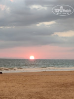 Территория отеля не большая. Отель буквой "П", лужайка, бассейн и ресторан. Все друг у друга как на ладони. В номере все без излишеств, но комфортно. Сан узел большой, все работало исправно, как в прочем и все остальное. Было приятно вечером или утром отдыхать на балконе, пусть с частичным видом на океан. Воду, чай, кофе в номер ставили, только когда заказывали уборку номера. А так ходили сами. Холодильник мини. Кстати, как и фен. У куклы Барби такой же, наверно. Кормили довольно не плохо. Утром чай, кофе, масло, тосты сами делаем. Омлет, или яйца вареные. Оладьи, овощи гриль, фрукты. Если заканчивалось что либо, выносили еще. Голодными не оставались. На ужин суп, второе, фрукты или мороженое, йогурт. Иногда для меня было островато, но не критически.