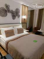 В номере большая двухспальная кровать, дополнительное спальное место (видимо, номер рассчитан на семью с ребенком), кресло, столик, холодильник, который пополнялся ежедневно (кола, спрайт, фанта, молоко), кофемашина, чайник, сейф. В санузле всё чисто, есть все необходимые принадлежности. Полотенца менялись каждый день. Уборка, правда, была не очень хорошая, но нас это не напрягало.