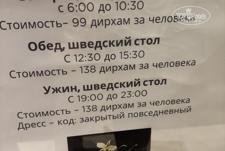 Обалденный отель, питание на все5. Больший номер , дочери 16 лет принесли кровать, сын 8л спал с нами, кровать огромная. .в нашем номере есть кухня, холодильник, микроволновка. У на. Было hb. Но кто взял завтраки, сзади отеля есть типа супермаркета и вам там приготовит свежие креветки , рыбу и подальше вы увидите башню с часами вот за ним есть супермаркет мы там заказали на вынос кебаб куриный 4 шт и сверху нам бесплатно положили гору риса. Салаты, соленья и всего 15 дирхам*22. Также на пляже можно заказать еду, огромная тарелка осьминога свежего на гриле с овощами 60 дирхам , там 800гр на 2-3чел отлично! За отелем можно заказать лангустиеы свежие, при вас приготовят. Так что найдете , что поесть. Вдоль дороги тоже есть кафешки, там местные сидят и едят, есть пицца. Если вы хотите поесть в отеле, то можно доплатить 138 дирхам,если вы взяли завтраки. До пляжа ровно 10мин, разное время заезда и выезда, хоть до 17:30 , лежаков полно, зонты тоже есть, есть туалет, душ и полотенца большие и без дыр. Пляж чудесный, на берегу ракушки, в воде песок, для детей есть горка с качелями, скучно детям не будет. Вода в декабре как в бассейне, мы купаемся. Бесплатно возят в 15ч посмотреть фонтаны в Буржхалиф, ехать час . Разные гостинцы берите не далеко от пляжа есть магазин Сити Макс, просто выходите пораньше, идти минут 10, прям напротив пляжа через дорогу светофор рядом с мечетью и сразу идите к небоскребу, там вывеска ситиМакс. Там дешевле всякие финики в шоколаде, дубайский шоколад много видов, манговый сок в бутылках 11 дирхам, манго 5дирхам, просто тут вас с покупками везет автобус, чем тащить потом вечером. Недалеко от отеля есть day today. Там чуть дороже на 2-3 дирхама и переходить через надземный переход, а он высоко над дорогой.