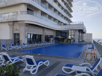 Бассейн: На террасе пятого этажа, проход через медцентр. Уютно, чисто и обычно мало народа. Основной - достаточно большой и рядом - детский лягушатник. Вода мне показалась холодноватой – всё же без подогрева) … но в принципе нормально, дети вон с удовольствием плескались! При входе в зону бассейна записываешься в журнале. Прохладительные напитки за допоплату, как и игрушки для не самых маленьких - типа электроводяных винтовок и управляемых надувных кругов с моторчиками). Всё очень прилично … хотя есть одно замечание - зонтиков следовало бы побольше поставить … но учитывая малолюдность это не было критично.