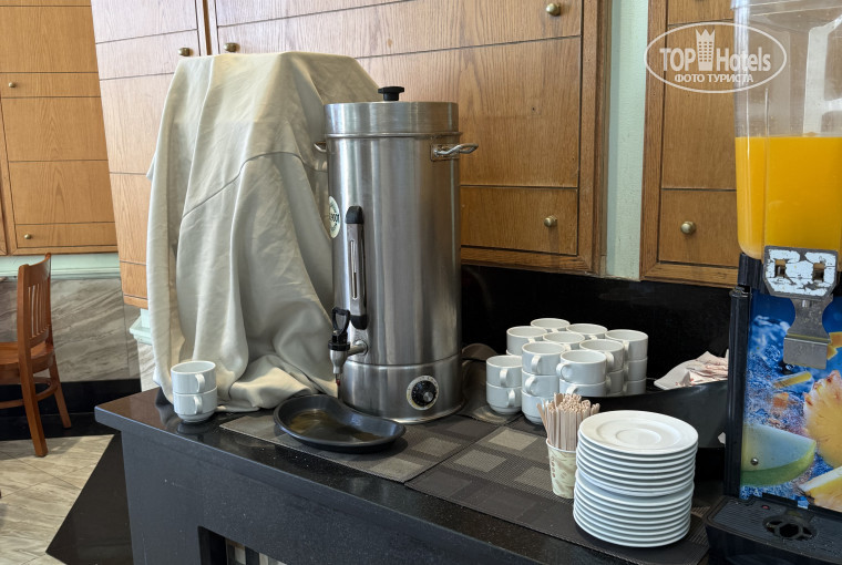 Жили в отеле 6 дней, автомат с кофе на завтрак был 1 день!!! Жалобы не помогли, кофе так и не было.. Поставили термос с "американо", но такое ощущение, что с туалетной водой... Чай также, чайник уже заваренный с 5 пакетами, горький, пить невозможно. Видимо положить коробку с пакетиками, чтобы каждый сам брал - не экономично.