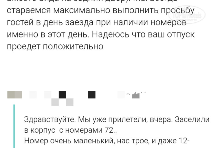 И ни какие Алёнки/чаевые/презенты в паспорте не спасают ситуацию. Убитые номера, заляпанная и изрисованная мебель... Через два дня переговоров предложили вариант в корпусе 82.... (Скан от администратора прилагаю: "так же на втором этаже и тоже с видом на бассейн")... Ну ну... Вообще без солнечного света, на 1 этаже, с видом на забор....Опять же две кровати ("мы поставим еще одну") и неработающей дверью на балкон... Отличная альтернатива. Управляющая Виктория разводит руками, ведь деньги уже уплачены и мы им не интересны... Можно других разводить...
