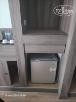 Номер нам достался угловой, достаточно просторный с балконом. В номере был чайник, стаканы, кондиционер холодильник, фен,телевизор с русскими каналами. Убирали каждый день, воду 2 бутылки по 0,5 л оставляли, мыльно-рыльные были в больших бутылках. Нас номер полностью устроил. Видно, что недавно был ремонт.