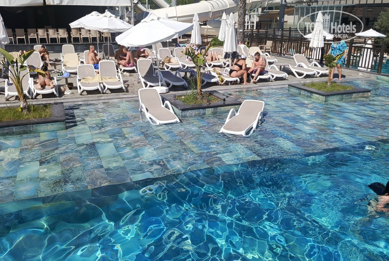 Территория отеля достаточно компактная, все мероприятия проходят у бассейна в том числе и вечерние.