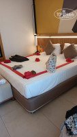 Приехали в отель в 12.00 сразу одели браслеты, сказали наш номер готов и заселили просто мгновенно.проводили, показали что и как работает.Номер с прямым видом на Манавгат и кораблики, очень тихий ,чего не скажешь про номера на бассейн, где гремит до глубокой ночи дискотека. В номере был комплимент от отеля бутылка вина и тарелка с фруктами, что очень приятно, так же пляжная сумка.В мини баре вода, минеральная вода,пиво, фанта,кола.Кровать огромная, не было одеял, но по запросу принесли сразу 2, хотя просили одно