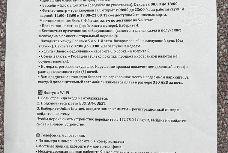Оценка сервисов отеля автором
