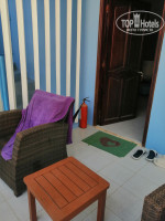 Мы со взрослым сыном и невесткой бронировали виллу. Нас вполне устроило приватное размещение.Дети жили на 2 этаже с балконом, мы с мужем на первом с собственной террасой. Ремонт, конечно же, требует обновления, но прям чего-то критичного мы не заметили. Мебель не новая, но вполне нормальном состоянии. Удобные матрасы и подушки. Белье и полотенца меняли каждый день, всё чистое и свежее. В номере есть холодильник (хорошо морозил),плоский ТВ с одним рус. каналом( не смотрели, включали фоном по вечерам), фен, сейф, халаты и тапочки,гель для душа, шампунь, зубные щётки и паста. Горячая вода появлялась после 11ч,видимо нагрев от солнечных батарей, но с утра комфортно можно было принимать душ комнатной температуры.