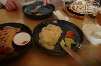 Завтраки:Разнообразием блюд не отличаются, но для нас всего хватало. Вкусный кофе, всегда суп фо, яичница, йогурт, жаркое из мяса или курицы, огурцы, помидоры, зелень, блинчики, спринг ролы, макароны с мясной подливой,сосиски.Из фруктов папайя, арбуз, ананас, драгон фрукт. Дома на завтрак у нас нет такого разнообразия. Завтраки проходят в красивой зоне, утопающей в цветах.По меню в столовой можно заказать обед или ужин. Но рядом очень много кафе и ресторанов на разный вкус и кошелёк. Часто из-за нежелания далеко идти обедали/ужинали напротив у мадам Лан, расчитывались картой union pay Россельхоза. Ходили в Чайхану 312,в Red for, ездили до Бо ке, в Матадоре ужинали разнообразными мясными блюдами , доезжали в буфет Да лат в Фантхьет. Ещё покупали суши и вкусную свежую рыбы семгу и тунца в Лотте марте в Фантхьете. С утра однажды скатались до рыбного рынка, покупали там свежих креветок и устриц, там же нам их и приготовили. Вкусно и недорого