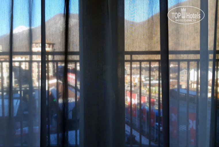Отель тихий, спокойный. Состоит из двух симметричных корпусов, расположенных возле подъёмника. Вокруг много кафе и ресторанов, больших и маленьких. Я бы сказал, что расположение идеальное. Автобусная остановка в двух шагах, если есть необходимость на автобусе доехать до Роза Хутор.