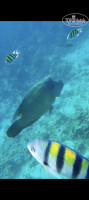 Погода в конце декабря была тёплая. Море 26 градусов. Мы плавали по два часа, наблюдали за обитателями Красного моря. Один раз увидели мурену и маленькую барракуду, морские ежи прятались глубоко в кораллах, рыба-попугай и рыбы-сержанты носились вокруг нас, разноцветные рыбы- бабочки привлекали внимание. Но мы плавали ради общения с Наполеонами - в этом году одновременно видели трёх штук. Чтобы их увидеть необходимо было плыть к понтону отеля Айленд и просто ждать. Чаще всего в 10 часов приплывали эти красавчики из синевы и кружили вокруг людей, ожидая угощения. Когда Наполеоны ничего не получали, уплывали к соседнему отелю. Но этого времени было достаточно, чтобы снять на телефон как огромные рыбки трутся как котята, выпрашивая вареное яйцо. Этот отель я выбирала по отзывам именно из-за того, чтобы увидеть Наполеонов лично. Нам показали видео, где Наполеонов было семь штук ранним утром.