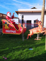 Из фруктов - бананы, гуава, мандарины, нарезанные: гранаты, апельсины, дыня, ... Один раз (25.12) давали клубнику - но она невкусная совсем.