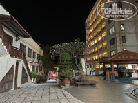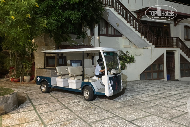 Отелю принадлежит несколько зданий по обе стороны дороги. "Трансфер" при заселении и выселении от ресепшн к номеру через дорогу и обратно на электрокаре добавляет удобства и приятных впечатлений. Отелю принадлежит просторная крытая стоянка, так что смело можно брать хоть байк, хоть машину.