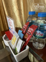 Отдельно хочется отметить чистоту – уборка была ежедневной и безупречной. В номере есть все необходимое: сейф, холодильник, чайник, пляжные полотенца, фен, полный набор для душа, а также приятные мелочи, такие как чай, кофе и сахар, бутилированная вода . Будьте внимательны - вода на столике с чаем и кофе (0,33 л) бесплатно, а вода в 1,5 - л бутылке платная, счет выставят при выселении.