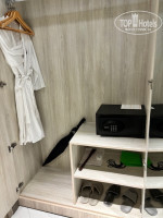 Также есть две пары тапочек - и это прямо новый опыт (а так можно было?). Тапочки не одноразовые, тканевые, кто и как их стирает и обрабатывает - неизвестно, но выглядят они потрепанными. Я даже пальцем к ним не прикоснулась, во избежание. Достала свои одноразовые и радовалась им все время пребывания в отеле. Берите с собой тапочки!