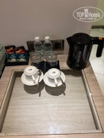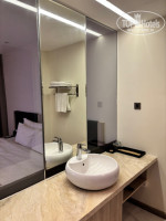 Номера достаточно большие. В номере: сейф, зонт, шесть вешалок, два халата, два банных полотенца, два полотенца для лица, одно полотенце для ног, фен. В душевой - гель для душа и шампунь-кондиционер (2 в 1). Душ с термостатом. В чайной зоне: два стакана, две чайных пары, чайничек, две бутылки воды 0,35 мл, два пакетированных зеленых чая, два кофе 3в1. Также есть холодильник, в нем платная вода задорого. Из гигиенических принадлежностей: мыло небольшое, шапочка для душа, расческа, две зубные щетки с пастой, ватные палочки. Хорошие блэкаут шторы.
