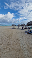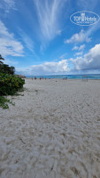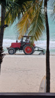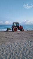 Чистый, утром очищают от водорослей, песочек, лежаки и зонты из листьев норм, полотенца и матрасы дают. Место хватает.
