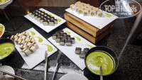 Еды хватает, вкусно, салаты, супы, хлеба,сладости, фрукты, гриль, рыба, курица, говядина, свинина, креветки, лангустины, макароны, в общем нет голоду).