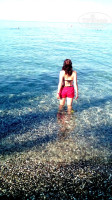 - вход в море по гальке (зайти туда можно либо с берега в специальной обуви, либо с пирса, что с маленькими детьми не очень удобно);