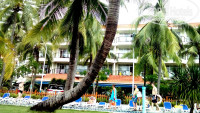 Наш отдых пришёлся на конец ноября-начало декабря и в холле была наряжена ёлка. Запомнилась и небольшая, но ухоженная территория с декоративными мостиками через бассейн и речку, где живут красноухие черепашки. Бассейн хорош, большой, есть где поплавать, вокруг него есть несколько фонтанчиков в виде зверушек. Рядом множество зелени и пальм. Море тоже недалеко, пляж песчаный. По дороге можно сфотографироваться с местной скульптурой-достопримечательностью. Отдельного внимания заслуживает набережная: вы прогуливаетесь по деревянным настилам, посередине растут украшенные гирляндами пальмы, а сбоку целый ряд кафешек на любой вкус и кошелёк. Вид вечером просто волшебный.