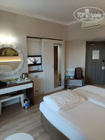 Отдыхал в отеле зимой второй раз. Народу в отеле в не сезон не много,что очень радует. Размещение прошло быстро. В номерах все конечно не новое,но работает техника хорошо. Вода горячая с хорошим напором круглосуточно. В номере в этот раз был пустой мини бар,в наличии только 3 бутылочки воды. Постельное белоснежное,я на это обращаю внимание в первую очередь.