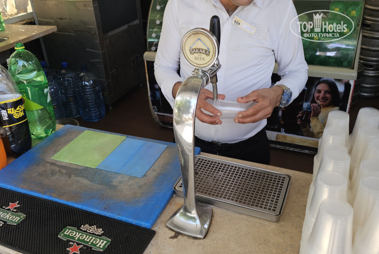 2. около пляжа, он же для главной столовой (напитки в баре наливают в пластиковые стаканчики 0,1). На рецепшн бар платный, кроме стакана воды. В баре у пляжа днём очередь по 20 человек, (один человек 2 стаканчик - слова бармена) напитки все стандартные в пластиковых бутылках (разбавленные), пиво тоже разбавленное. Чай и кофе можно только выпить когда работает столовая, в свободном доступе у них нету такого понятия "выпить чай или кофе" нужно идти в номер делать. Один бассейн с ледяной водой очень холодный, второй с подогревом но тоже прохладный. в Январе было днем +23 и немного ветрено. Персонал в отеле очень наглый, хамы, не приветливые, только несколько человек нормальные. В этом отеле не чувствуешь себя гостем, а как будто ты тут всем что то должен! На территории отеля строят фонтан и кладут плитку, целый день идёт ремонт и пыль от резки плитки постоянно. Сама территория у отеля маленькая. Анимация днем- танцует на пляже, пляж не плохой шезлонгов много, навесы есть, стоят шатры бесплатные, но парнишка в красной форме постоянно пытается за них взять 8$ аренду. Мы в Египте отдыхаем 15 раз и есть с чем сравнивать. Вечерняя анимация никакая - туристы развлекают себя сами. Ужин начинается в 18:30 и в 20:30 еды уже в столовой нету, обслуживание в этом отеле на 2*. В день выезда браслет снимают в 12:00 и ни чем пользоваться нельзя кроме воды и пляжем, если захочешь обед или ужин уже заплати 20$. Откуда у этого отеля 4* совсем не понятно, максимум 2-3*. Заплатили 118000 руб. за тур. 1 звезда за пляж и 1 звезда за близость к центру наама бей. Желания вернуться в это место - НЕТ ! Плохой сервис, персонал, отношение к туристам, старые вонючие бунгало. Красиво только на фото в интернете. Лучше поискать по отзывам и обзорам, что то лучшее, чтобы не портить себе впечатление о Египте.