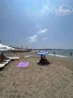 Пляж расположен достаточно близко, минут 7 спокойным шагом, удобный пологий вход в море, сначала мелко, до глубины нужно немного пройти, будет комфортно с детками, лежаки по классике часто заняты полотенцами отдыхающих, но даже в высокий сезон место всегда можно было найти.