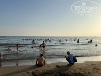Как это обычно бывает в Турции на пляже полно, к сожалению, не всегда чистоплотных местных, при нас один парень плавал с сигаретой и бросил окурок в море, особенно их много во второй половине дня, собираются целыми семьями, оставляют после себя горы мусора. К утру это всё прибирает персонал.