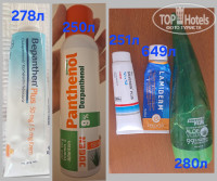 В аптеках цены не низкие, так что аптечку самое необходимое лучше привезти свое, а также солцезащитные крема и средства если сгоришь тоже везите побольше. И мажьтесь чаще, мы в 1й день все сгорели, в аптеке потом покупала много средств мазать 3х людей) Цены также есть на фото.