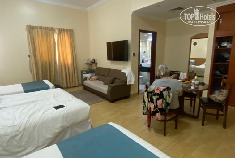Большинство номеров без окон! Окно выходит в коридор и было у меня закрыто. Номер среднего размера. Гель для душа и шампунь в дозаторе на стене. Унитаз был с трещиной. Сначала жила одна в 245 номере, потом приехала подруга и мы на двоих бронировали другой номер. Уже с отдельными кроватями. Это был 138. Номер большой, семейный с 3 кроватями и окном на улицу! Ура! В санузле душевая кабина , но без дверцы- вода лилась мимо . Так же дозаторы с моющими средствами. Был диванчик дополнительно и большой круглый стол. Телевизор большой, луше, чем в предыдущем 245 номере. Централизованный кондиционер, но мы им не пользовались, т.к хватало открытого окна. Брали только завтраки. Голодными не будете, но особого удовольствия нет. Для детей еды почти нет. Кроме каши молочной. Кофе растворимый, чай в пакетиках. Сок. Был Новогодний Гала ужин. Вкусно, разнообразно . Программы не было. Потом сами себе устроили развлечение. Есть хаммам, ходили несколько раз понравилось. Бассейн внутри помещения. Маленький, но после хаммама поплавать-хорошо. Гостей приглашать в отель нельзя. Только на ресепшен можно пообщаться. Все. В общем отель уставший. На небольшое время остановиться можно. Но в следующий раз выберу другой.