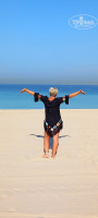 Мы побывали на обоих пляжах. Но понравился больше тот, который направо от отеля, он граничит по пляжу с отелем ЛоуЛоу, при входе по границе с ним стоит страшный железный ржавый забор. Получается-это гости отеля ЛоуЛоу сидят как за решеткой, пляж- то у них довольно узкий. А мы входили на пляж, отходили метров на двести еще направо и наслаждались свободой. Гуляли вдоль моря направо дальше до отеля Сахара, это чуть больше 1 км, они там тоже сидят за страшной решеткой, пляж у них вообще шириной метров 20, и рядом еще какай-то завод шумит, трубы.