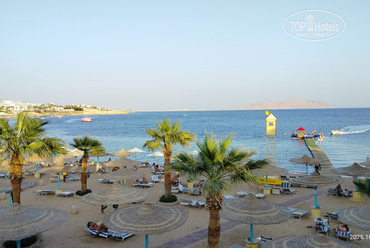 Отдыхали с мужем в отеле в середине октября 2025г. Приехали в отель в 16-00 час. , а номер заселили только в 18-00 час. Задержка вышла из-за сотрудников ресепшен, которые продолжительное время искали документы по оплате нашего проживания. Это стоило нам испорченного настроения и впустую потраченного времени. В результате нам дали хороший номер, чем постарались исправить эту оплошность. Номер действительно был очень хороший - на втором этаже с отличным видом с лоджии. Все техника работала хорошо. Хочется отметить отличную работу молодого человека убиравшего наш номер. Единственное, что мешало спокойному отдыху, это постоянно звучащая с вечера до середины ночи музыка с Сохо. Это издержки проживания в таком посещаемом месте. В отеле отдыхают итальянцы в большом количестве, из-за чего в ресторане постоянно шумно, но в целом все терпимо. Питание в ресторане вполне приличное и перечислять все нет смысла. Раз в неделю были вечера с морепродуктами (крабы, креветки). Все было бы хорошо, если бы тот факт, что мы отравились в ресторане плохо приготовленной на гриле рыбой. Она оказалась непрожаренной и, вероятно, не очень свежей, что привело к сильному отравлению. Я не могла три дня прийти в себя после такого ужина. Хорошо ещё, что обошлось без вызова врача. Все лекарства мы привозим всегда с собой. В барах в отеле и на пляже все отлично - соки, напитки, пиво, кофе, коктейли. Дорога на пляж не занимала много времени. Трансфер работал хорошо и ждать долго не приходилось. Пляж хороший, но всегда был аншлаг (бархатный сезон в Египте). Правда весь период нашего пребывания на отдыхе был ветер и безветренно стало только перед отъездом. Лежали отличные - легкие и удобные. Понтон не длинный. Риф есть, но скажем - так себе, видели и лучше. В целом отдых прощел нормально, если бы не отравление.