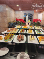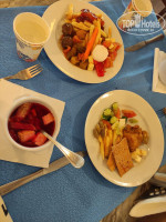 Еда. Хорошая. Есть и овощи, и супы, и мясо (курица всегда, иногда были индейка, баранина, говядина правда жестковата), картошка, салаты, вкусные йогурты, рыба тушёная, на гриле готовят яичницу утром, а вечером мясо и другие блюда, из сладкого пироженки, булочки, фрукты - зелёная дыня, порезанные грейпфрут, апельсин, мандарины, финики свежие, клубника только на пирожных и была на рождество, но нам не досталась (ее и другие фрукты при желании можно купить на рынке в Дахабе)) Вобщем нормально, еда вкусная ) Чай правда в бумажных стаканчиках...и кофе из баночки надо накладывать, как дома)), но тоже привыкли ) Ни разу не отравились, плохо не было, хотя на первый взгляд тарелки и приборы какие-то не очень чистые... Иногда сами салфетками вытирали. Ресторана там два, но мы ходили в основной, в тот, который в форме корабля, там поприличнее и почище.
