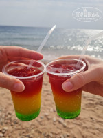 Пляж. Хороший, не грязный. Есть мусорные урны. Бар на пляже, где делают вкусные коктейли) и можно взять кофе. Море прекрасное, чистое, прозрачное, рыбки есть) все люди со своими масками. Полотенца пляжные большие жёлтые выдают по карточкам около пляжа и около бассейна, который рядом с рестораном.