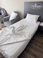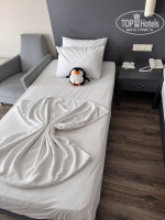 Номер большой с полноценной большой кроватью и еще одной кроватью. Номер с хорошей звукоизоляцией и кондиционером. Номер был с французским балконом, т.е. без полноценного балкона. Это минус был данного номера.