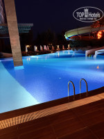 У отеля ухоженная красивая территория. По бассейнам всего 2 больших бассейна с горками, 2 детских бассейна. Амфитеатр, который по вечерам заполняется на 85-90% для просмотра вечерних шоу. Приезжали группы танцоров, гимнастов. Один раз попали на пенную вечеринку. Вода в бассейнах хорошая, плавали много с дочкой – отравлений и сыпи не было.