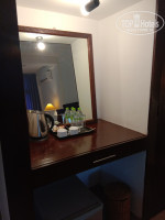 Есть небольшой бассейн и бар, откуда играет приятная музыка. Все вокруг зелено и вечером подсвечивается огоньками. Тихо, уютно как на вилле.