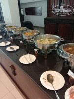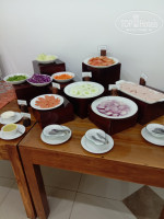 Имеется станция приготовления яичницы или омлета. На выбор всегда 3-4 вида горячего: картофель, лапша, рис. Фасоль, бобовые, чечевица и даже маш! Из мясного только курица в различных подливах. Очень здорово, что к этим блюдам есть различные местные добавки а-ля кокосовая стружка в карри, красный лук в кисло-сладком соусе и т.д.