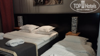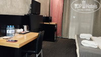 В отеле останавливались в Январе на выходные. Приезжали семьёй покататься на лыжах. Номер мы брали - Улучшенный стандарт с балконом, в 1-ом корпусе, без питания. В номере был сейф, холодильник, телевизор, кондиционер, халаты, тапки. На столе 4 бутылочки воды, чайник и чайные принадлежности. Так же, в ванной комнате были зубные щётки. Всё хорошо, кроме шума изоляции, ночью это особенно чувствуется. Видимо стены бумажные)).