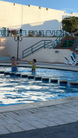 Бассейн в отеле без подогрева. Есть 3 бассейна. Один главный с горками, типа аквапарка (мы там не купались, так как там всегда много людей). 2-й детский (очень маленький, для малышей, но чистота показалось так себе). 3-й около нашего 9-го корпуса, дети купались в основном там. Вода была очень прохладной, грелись на солнышке. Возле бассейнов сидят спасатели, так что никто не утонит + бассейн не очень глубокий, и это радует.