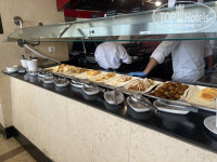 Питание в отеле просто изумительное!выбор блюд огромный, можно найти всё, что душе угодно, и я при всем желании не перечислю всего, что было предложено) Жалели мы только о том, что в обыденной жизни питаемся умеренно, и в наши маленькие желудки не убирается всё, что хотелось бы съесть, даже если попробовать всего по кусочку😂 Что было актуально для нас и что мы ели чаще всего: жарят омлет/яичницу с различными наполнителями, и что важно-делают это быстро, очередь не копится. Вкусные нежные блины на завтрак, фантастически вкусные, воздушные круассаны (я равнодушна к выпечке, но круассаны и слойки были такими невероятными, что даже на мой взыскательный вкус они таяли во рту и манили за ещё одним). Круассаны берите в конце зала, где повара ставят их в печи при вас, а не там, где выложена разная выпечка в середине зала. На все приемы пищи было 6-8-10 видов фруктов, в том числе ананас, манго, вкуснейшие финики, а не только яблоки, апельсины и сливы, которых мы и дома прекрасно поедим😄 свежие овощи, салатные заправки в ассортименте. Колбасно-сосисочные изделия были достойны употребления, а не как обычно это зачастую бывает в отелях Турции и Египта. Сыры в ассортименте, много вариантов мягких сыров типа феты. В зале ресторана несколько кофе-машин, что тоже очень удобно и позволяет не копить очередь. Кофе вкусный, можно при желании добавить в него миндальное молоко (оно стоит рядом с сухими завтраками). Также были неплохие соки, в частности мы брали апельсиновый свежевыжатый (соки не химозные, как это тоже часто бывает). На обед можно пойти в основной ресторан-там ассортимент блюд будет ощутимо больше. А можно пообедать в баре на пляже-здесь заказ по меню (пицца, салаты, картофель фри, бургеры и прочее). На обед в основном ресторане несколько раз мы заставали манго. Есть супы, свежие овощи, салаты, паста в разных вариациях, которую готовят при вас, мясо и рыба на мангале, маленькие крабики (но на мой взгляд, есть в них нечего), десерты и фрукты. На ужин всегда готовят что-то особенное: запеченная красная рыба, осьминоги, в мангальной зоне 4-6 вариантов мяса, птицы и рыбы; очень рекомендую перепёлок на мангале! Баранина тоже отлично была приготовлена, да и вообще к мясу у меня претензий нет, вкусно было всё. Всех блюд гостям хватает, даже если что-то закончилось, то выносят новую порцию. Мы приходили на ужин во второй половине, и всегда нам доставалось желаемое блюдо. На ужин также огромное количество десертов-торты, пирожные, восточные сладости-попробовать их все, конечно, невозможно. Есть шоколадный фонтан. Если вы сладкоежка, это ваш рай😄но вот пахлава нам не зашла-жесткое сухое тесто, и с турецкой не сравнится. Очень удобно время и длительность приемов пищи: завтрак с 07:00 до 10:30, обед с 13:00 до 15:30, ужин с 18:30 до 21:30. Угодили и ранним пташкам, и любителям поспать, и тем, кто хочет вечером провести время у моря до самых сумерек и успеть на ужин. По напиткам: мы брали чаще всего белое/красное вино, в баре на пляже ром с тоником, пиво или манговый сок с мятой (вроде тоже не химозный). Также в баре на пляже можно взять кофе из кофе-машины. Коктейли по барной карте на мой вкус невозможно сладкие, я не смогла это пить. Голова на утро не болела, даже если употребляли лишнего-могу сделать вывод, что алкоголь нормального качества, но вино по вкусовым характеристикам не вау, конечно, но пит