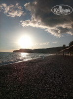 Пляж: выход на пляж через калитку справа от амфитеатра, через дорогу, парк, мост и налево к морю (метров 200 не больше) вход галька.