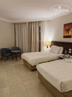 Номер стандарт с видом на бассейн, в-принципе не плохо, обновленные стулья, новый сейф, чистая ванная. Имеется чайная станция, питьевую воду в бутылках по 1,5 л пополняют. Уборка посредственная, постельное белье не меняли. Моющие средства дают по запросу, а так в дозаторах жидкое мыло и гель для душа. также можно брать маленькие бутылочки воды в кофейне.