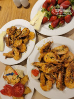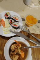 По ресторанам: есть основной, на пляже и 3 ресторана аля-карт (леванский, греческий и итальянский). Были в Леванском – подают закуски, шашлык из разных видов мяса, рис, можно для разнообразия сходить. В грческом – по принципу шведского стола, была мусака, телятина, ккурица и пр., салаты, фрукты. В основном ресторане еда разнообразная, мясо, курица, рыба. По четвергам морской день, жарили креветки. Через день давали клубнику, два раза был физалис. Был день русской кухни – борщ, фаршированный перец, пельмени, котлета по-киевски. Кофе из кофемашин. На пляже в обед бургеры, паста, пончики, пицца. В главном здании кофейня, делают разный кофе, там же можно брать питьевую воду в маленьких бутылочках. Мороженое дают у бассейна, ужасное, как замороженная вода.