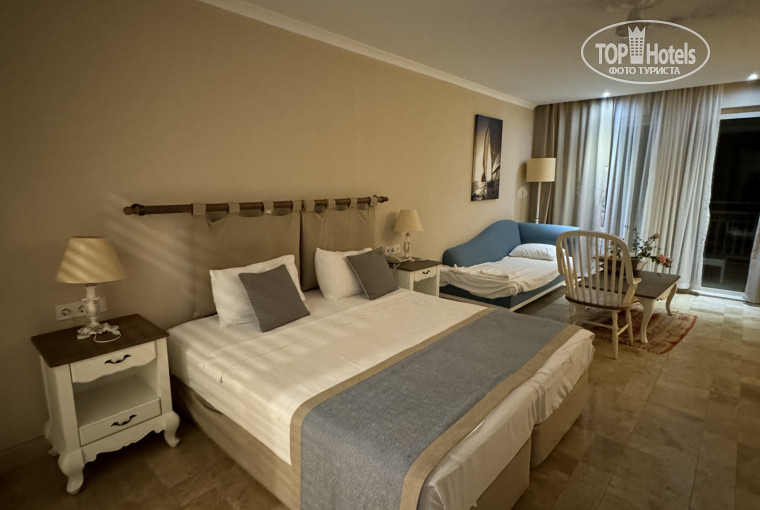 В отеле отдыхали с 18.05.2024 по 28.05.2024 семьёй. Начну с того, что отель находится очень далеко от аэропорта Анталии, когда читала отзывы перед поездкой не придала как то этому значение, а надо было! Дорога до отеля очень извилистая по серпантину, достаточно опасная, ехали ночью, укачало всех кто ехал с нами в трансфере, и детей и взрослых и даже водителю было плохо, когда наконец-то приехали в отель, не хотелось уже ничего! Заселили быстро, номера специфические, но мы видели их на фото, нам понравились, необычные, большие, огромный балкон! Отель похож на замок средневековья, своя атмосфера, интересно, но на любителя! Территория отеля небольшая, но все компактно. На территории отеля очень много животных, это факт, и убирают за ними не так быстро, как надо было бы! Пляж, потрясающий! Песочек, мелкий заход в море, море чистое и красивое, большая береговая линия! Но! Будьте аккуратны, спасатель отсутствует на пляже, на наших глазах утонул мужчина, купались с супругой, его накрыло волной и унесло, когда вытянули с моря, уже было поздно! После этого иногда видели спасателя на пляже! Питание, так себе, голодными не будете, но все одно и тоже, и вечно повар то спалит мясо, то просто безвкусное какое-то! Из фруктов были персики, арбузы, дыни, абрикосы, яблоки. Мороженое, венские вафли, гёзлеме, всё было! Алкоголь как и везде! Анимации в отеле можно сказать нет! Вечером дискотека для малышей, и караоке для взрослых потом, на этом всё! Около отеля нет никакой инфраструктуры! Мы ходили в город Демре, можно пешком прогуляться вдоль красивой набережной, можно на такси, таксисты ждут пока вы погуляете там, и потом забирают обратно в отель. Город маленький, но есть магазины и рынок, где можно купить дешевые фрукты, сувениры. В Демре находится церковь Святого Николая и ликийские гробницы с амфитеатром (вход платный).Мы ходили, интересно было посмотреть, раз уж мы добрались в такую даль. Также мы ездили на такси в порт Демре, посмотреть больших черепах, и покормить, деткам было интересно! В целом отель понравился, но дорога до отеля и с отеля нам запомнится надолго:)