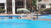 Пляж отеля хорош, много разных рыб, видели большого орлекола, двух поменьше, огромную чёрную мурену. С утра вода была прозрачная а ближе к обеду становилась мутная, итальянцы любители посидеть в воде, мутили.