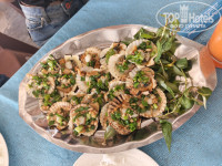 Обедать очень часто ходили слева от отеля на этой же стороне где корпус у моря, непримечательное кафе семейное ,много местных,прям на берегу на веранде.всё свежее вкусное!