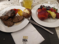 Заселение прошло с проблемой,куплен номер Делюкс и зная, что в бунгало три варианта номеров,1)без балкона,он же французский балкон,2)с балконом,его можно рассмотреть,3)с террасой,балкон на две стороны и сам номер больше,делюкс.Ресепшн выдал карту и отправил на заселение,увидев,что это обычный маленький номер я вернулся и предъявил претензию,через пять минут выдали с террасой в первом бунгало к морю.Большинство туристов немцы-пенсионеры и это не создаёт особых проблем для остальных кроме того,что они избаловали официантов чаевыми,это в баре у ресепшн и бар терраса,он при выходе с ресепшн.В столовых пока подходят и спрашивают дринк что будете и убирают оперативно посуду.Питание в этом отеле выше всех похвал.В главном корпусе где ресепшн,столовая и там проходят завтраки и ужины,первый отель где жарят эти яйца в нескольких местах,очередей почти нет.В одном месте разливает на плиту,в другом месте жарит в сковородках,выбирайте.Обилие фруктов,очищенные гранаты,виноград,целые зелёные и красные яблоки,груши,гуава,нарезанная дыня,финики.Кофе из кофемашин на выбор любое.Соки яблочный,ананасный,апельсиновый.Манго сок можно только заказать официанту,принесёт.Гуава сок можете заказать только в ресторане Оазис,у пляжа там проходит обед.В основном ресторане каждый вечер мясо на гриле,жарят шашлыки и стейки,люля,овощи.В основном ресторане можете утром на завтрак увидеть и спросить что-то шеф повара и его помощника,им накрывают стол со стороны правых бунгало,второй столик справа от стекла.Мороженое в баре на террасе,при выходе с ресепшн к бассейну,с 14:30 и работает два часа.Так же вечером на ужине в главном ресторане можете до 19 и до 21 часа получить мороженое.На пляже первые лежаки занимают либо ночью либо на рассвете,так как в 7:00 выдача новых полотенец и при выборе мест они заняты.Немцы просто их не сдают и пользуются старыми,сушат на балконах и бегут на рассвете кидают их на лежаки,есть предположение что полотенца с пляжа просто сушат,не стирают.У бассейна глубина 160 и 130 см,тёплый 30С.Там отдельно получаешь полотенца на бассейн,просит египтянин не носить их на пляж,а сдавать ему и пользоваться у бассейна.Такси,например до Сензомолла 10 долларов,а если отойти от отеля 200 метров можно нанять за 3-4 доллара с торгом конечно же.Выйти из отеля налево около 15 минут Манго маркет.50 метров также слева Нил Фараон сувениры.Сензомолл уже другой,не понравился:цены не соответствуют на бирке и кассе.Оплата только Визой или фунтами,доллары не принимают. Резюмируя данный отель можно сказать,что не плохой сервис,отличное питание,номера,сантехнику нужно освежить,официантов избалованных разогнать,ресепшн посерьёзнее к выдаче номеров и не гонять гостей выдавая ключ от несоответствующие оплате номеру.На пляже так же официанты бегают а основном за монетки со скоростью ветра.Ходят предлагают тату,массаж, фото впрочем как и везде в Египте.Уборка египетская,мы вешали не беспокоить,после обеда у уборщика брали воду и бумагу когда требовалось.Попросили пару раз убраться,вынести мусор,дали презент,толку ноль,пыль - грязь вековая там же.Берите маленькие алёнки для понравившейся обслуги,секьюрити при входе,мальчик открывающий дверь в отель,официантам заслуживающим внимания.Достаточно угостить один раз и вас запомнят и с улыбкой обслужат.Не давайте им денег. Если не д
