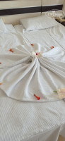 Заселение прошло быстро, нам повезло как оказалось, 3 корпус, 3 этаж, вид на бассейн. Ничего не доплачивали. Очень прикольные браслеты, которые используются как ключ от номера. В номере не все освещение было исправно , заявили, пошли гулять, вернулись - все исправлено. В шкафу обнаружили мужские шорты и с/защитный крем. Странно конечно, если номер убирается перед заселением, то по идее в нем ничего не должно оставаться от предыдущих жильцов..., ну ладно, выкинули. По просьбе нам принесли мыло и набор для шитья. Тапочки были. Матрацы и подушки удобные. На все просьбы менеджеры реагировали оперативно. Хочется отметить Татьяну, общение с которой всегда было очень приятным и продуктивным.